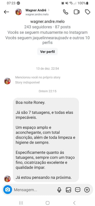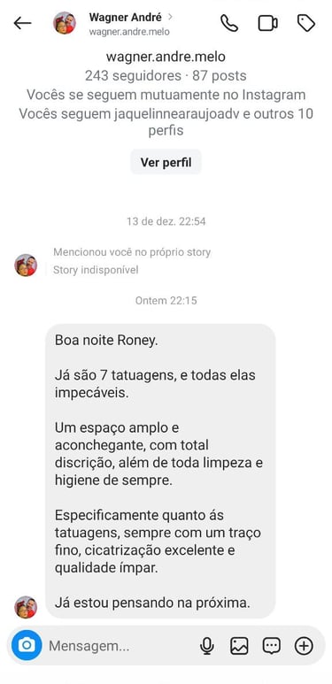 Sou casado com Janine e pai do Enrico, e tudo o que faço é guiado pelo desejo de construir uma vida de liberdade, segurança e bons momentos para minha família, enquanto compartilho minha paixão e técnica com quem valoriza a arte na pele.