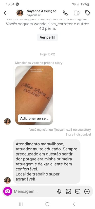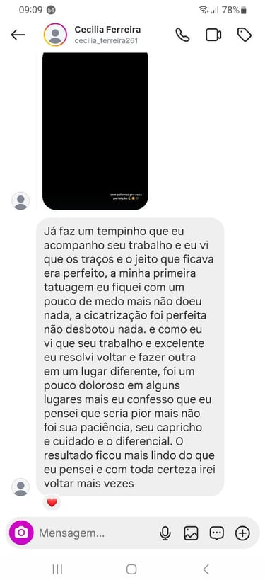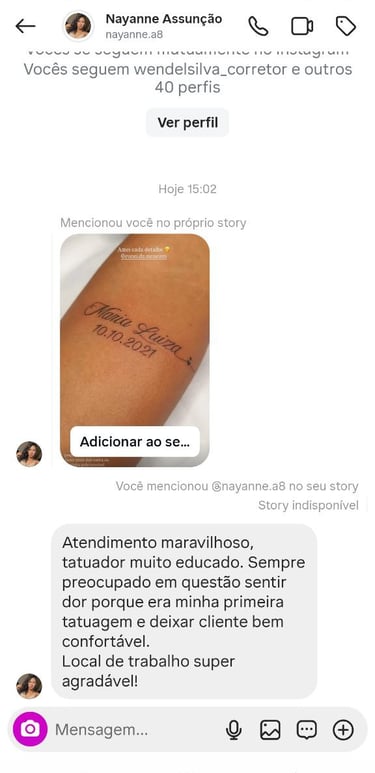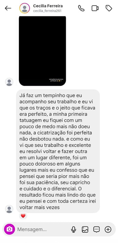 Cada traço que faço busca capturar a essência do cliente, tornando cada tattoo uma obra exclusiva.